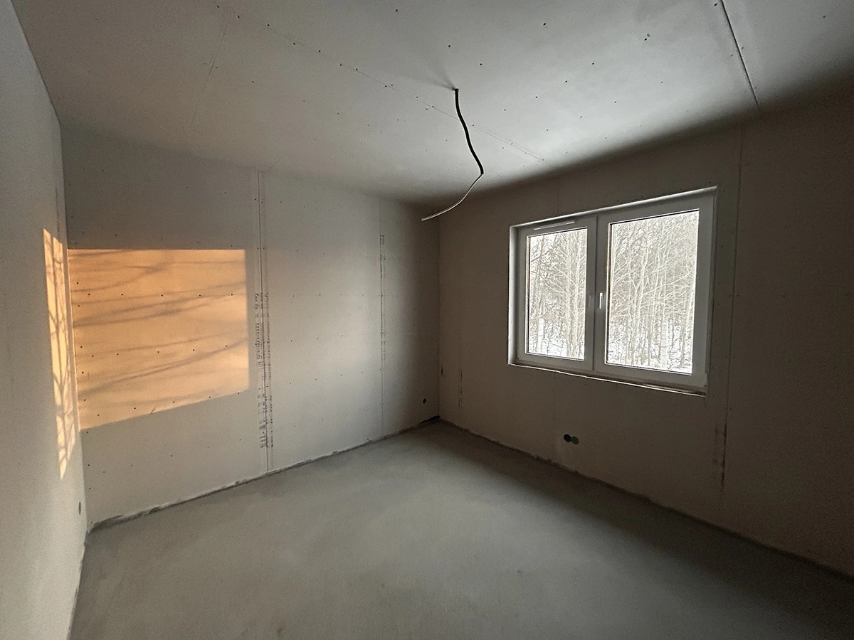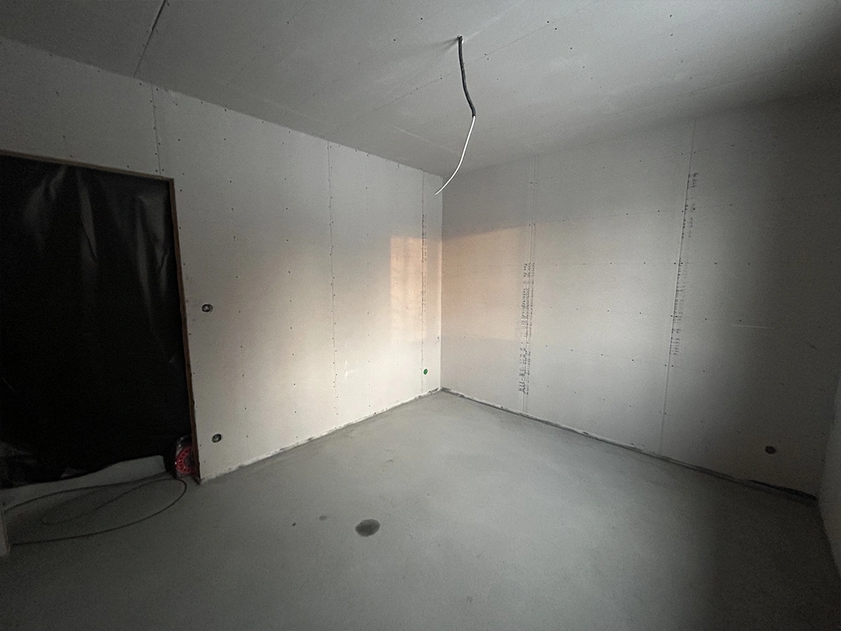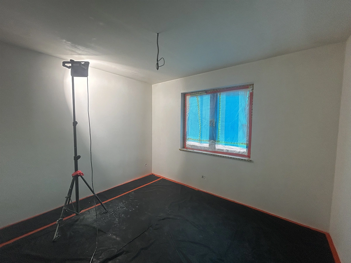 Każdy etap szpachlowania pokoju wykonaliśmy z dbałością o detale. Wzmocniliśmy wszystkie łączenia płyt g-k, aby zapobiec powstawaniu pęknięć w przyszłości. Następnie nałożyliśmy warstwę gładzi na całej powierzchni ścian i sufitów. Po wyschnięciu dokładnie przeszlifowaliśmy podłoże i usunęliśmy pył.
